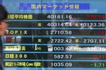 大幅に下落した日経平均株価を示す岡三にいがた証券のボード=8月5日、長岡市