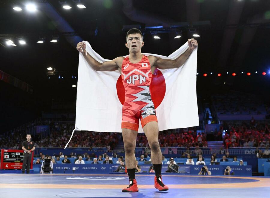 パリ五輪第12日の8月6日、レスリング男子グレコローマンスタイル60キロ級の決勝で文田健一郎(28)=ミキハウス=が曹利国(中国)を破り、金メダルを獲得した。男子グレコの日本勢の優勝は1984年ロサンゼルス五輪52キロ級の...