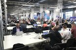 会場入り口で客のチケットを確認するボランティア=8月5日、パリ郊外のラデファンス・アリーナ