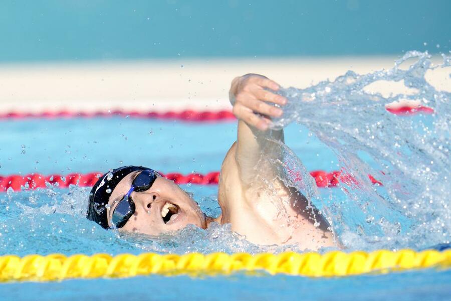 男子決勝 水泳に出場した佐藤大宗=パリ郊外(共同)