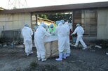 豚熱の感染が確認された養豚場で始まった防疫作業=8月15日、新発田市(新潟県提供)