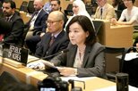 会見で、佐渡金山での「強制動員」の明示を訴える韓国の国会議員ら=8月15日、国会