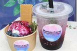 来園者にブルーベリーの摘み取り方について説明する地域おこし協力隊員の武樋淑江さん(右)=長岡市和島中沢