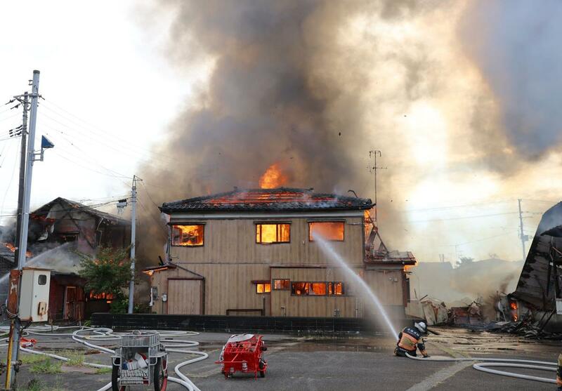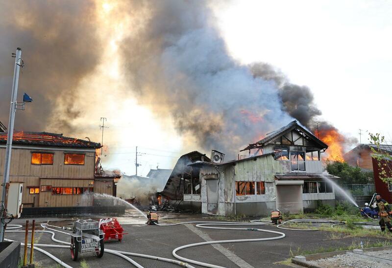 見附署によると、住宅の2階から黒煙が上がっていると、火元の住人から119番通報があった。出火から4時間以上たった午後6時半前に鎮圧した。見附市消防本部によると、焼いたのは住宅など6棟と工場1棟。出火原因や焼失面積は不明。