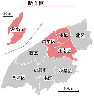 新潟市の中央、東、江南の各区と佐渡市で構成する衆院新・新潟1区新潟市中央区、新潟市東区、新潟市江南区、佐渡市には、旧1区に出馬した立憲民主党の現職西村智奈美氏(57)=旧1区=、自民党の現職塚田一郎氏(60)=比例北陸信越=、日本維新の会の元職石崎徹氏(40)の3氏が再び相まみえる。共産党の新人中村岳夫氏(49)も名乗りを上げ、混戦模様だ。野党の3氏が自民派閥の裏金事件を受けて政治の刷新を訴え、無党派層の票の争奪戦が展開されている。...