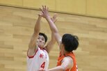 バスケットボール成年男子・新潟-長野 果敢に攻める新潟の主将、川原央也(右)=金沢市