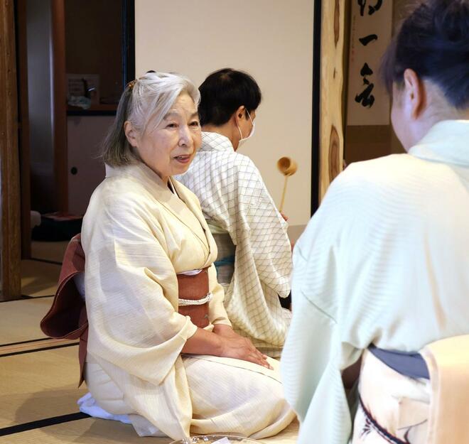 母が生け花の師範をしていた影響で、茶道教室を開きたいとも思っていた。2024年、市民活動団体を通じて「せっかくの着物のまち。茶道の裾野を広げたい。根付かせたい。年は取ったが、まだ間に合う」と講師を務めることを決めた。