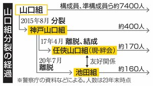 社会 指定暴力団「山口組」分裂から9年、抗争終結の道筋見えず… 勢力縮小も組織関係は複雑化、“報復の連鎖”に警戒続く 2024/9/1 22:00 国内最大の指定暴力団山口組が分裂し、神戸山口組が結成されて9年となる。この間、山口組の勢力は半減し、神戸山口組は1割以下になるなど警察の締め付けの効果が出ているようにも見える。一方、これまでに枝分かれを重ね... 残り856文字(全文:960文字) ここから先を読むには 続きを読む(会員登録する) 続きを読む(ログイン) 新潟日報朝刊を購読していますか? はい いいえ トップページで最新情報を見る 関連ニュース 暴力団は減少傾向…でも反社会勢力にご注意を! 新潟県企業対象... 2024/6/19 物価高の波はクリスマスケーキにも…県内洋菓子店「値上げ避けた... 12/20 馬乗りになり70代女性にキスなどし軽傷負わせたか…村上市の6... 12/20 渡辺謙さん(魚沼市出身)オーナー、宮城県気仙沼市のカフェ21... 12/20 風味豊かな新そば堪能♪ 上越市板倉区筒方地区で「どうがたの郷... 12/20 納税への貢献をたたえ上越市で表彰式、作文コンクール高田税務署... 12/20 [熊目撃情報]五泉市(12月20日) 12/20 少しの積み重ねが大きな力に 柏崎市で介護・福祉の若手職員交流... 12/20 捜査や捜索への貢献期待! 柏崎署で22年ぶりに警察犬嘱託、河... 12/20 食資源と製品力で新たな価値創造へ 南魚沼市が「バーミキュラ」... 12/20 世界湿地都市ネットワーク市長会議が新潟市で開催へ 来年11・... 12/20 「安心して医療を受けられる世の中に」上越市の直江津中で薬害を... 12/20
