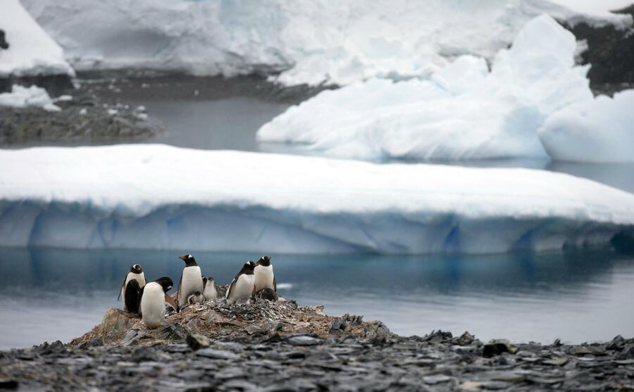 生態系についても非常に高い絶滅リスクに直面すると予測した。南極では氷が解け、ペンギンの生息域にも影響が出ている(写真・AP=共同)。