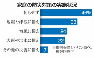 社会 地震に台風…災害への備え、家庭の46%で「なし」・損保ジャパン調査 防災学ぶ機会不足、「自分だけは大丈夫」の心理が影響も 2024/9/1 14:00 46%の家庭が災害への備えなし-。地震や台風といった自然災害が頻発する中、非常食などの備蓄や防災を学ぶ機会が不足している家庭が多いことが、損害保険ジャパンの意識調査で分かった。結果を分析したSOMPOリスク... 残り477文字(全文:581文字) ここから先を読むには 続きを読む(会員登録する) 続きを読む(ログイン) 新潟日報朝刊を購読していますか? はい いいえ トップページで最新情報を見る 関連ニュース [台風に備えるポイント]屋外の植木鉢は片付けて! 停電に備え... 2024/8/29 [ニュースQ&A]災害時、お金の備え方は?避難するなら現金は... 2024/8/24 [ニュースQ&A]南海トラフ地震など大災害、ペットがいる家庭... 2024/8/19 今年の漢字は「熊」 京都・清水寺で発表 [記事更新] 14:13 女性活躍を阻む「OBN」とは…東レ経営研究所の宮原淳二さんが... 13:30 新潟水俣病第5次訴訟提訴から12年…被害者高齢化「早期解決を... 13:00 [地震情報]青森県などで震度4 新潟県内は村上市で震度2、新... 12:05 SNSに出現「アイ歌」の聖地特定ファン、佐渡にうねり!地域と... 12:00 [熊目撃情報]南魚沼市(12月12日) 10:15 地域の安心に貢献!新潟県信用組合と新潟綜合警備保障が協定 発... 9:30 クマから児童生徒を守ろう! 湯沢町が湯沢学園の下校時にバスで... 8:00 冬の人気観光地、国内トップに新潟市選出!2025年旅行サイト... 12/11