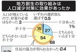 各自治体の地方創生の取り組みが、人口減少抑止に効果があったかとの問いに対し、「十分」とした自治体はゼロ。「どちらかといえば十分」は7自治体にとどまった。一方、「不十分」との回答が7自治体、「どちらかといえば不十分」は17自治体に上った。