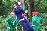児童たちは鎌で手際良く稲を刈り取ると、わらできつく束ねた。地域住民から「ひねるようにして束を二つに分けて」「隙間がないように...