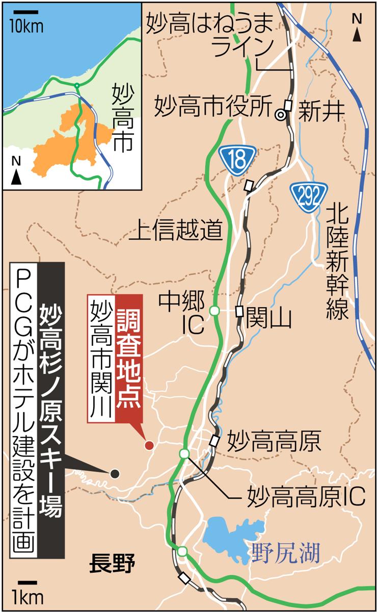 PCGは高級ホテルを妙高杉ノ原スキー場の駐車場に建設し、2028年末の整備を目指すほか、段階的に2千億円規模の投資を行う計画だ。主なターゲットは海外を含む富裕層。関川は杉ノ原スキー場に近く、いま宿泊施設の購入に動いているのは、その利用客を想定したペンションや飲食店を計画する業者とみられる。別の民宿経営者も「手当たり次第に売却を打診してくる。地元の人間じゃないビジネスマン風の人をよく見かける」と証言する。