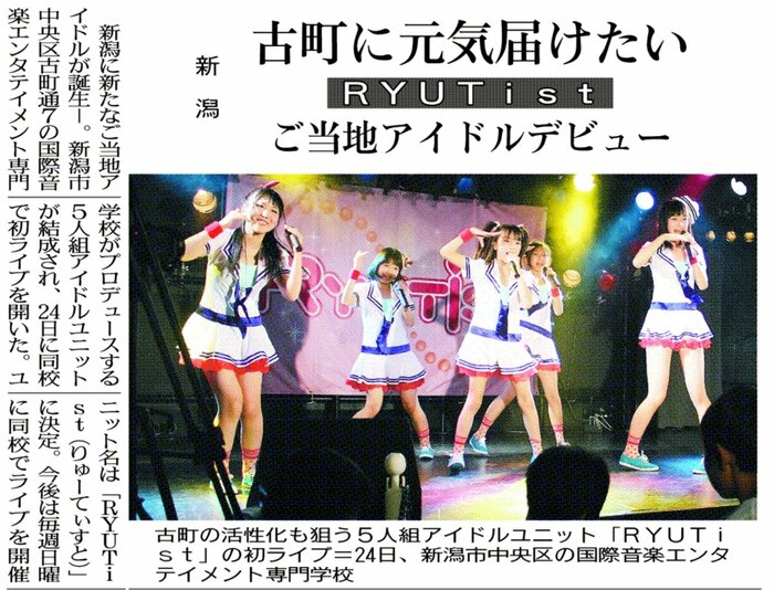 RYUTistのデビューを伝える新潟日報の記事