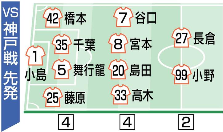 序盤は激しいプレスに遭い、前半15分、神戸のDF酒井高徳(新潟県三条市出身)に先制を許した。新潟は徐々に攻勢に転じ、31分にFW長倉幹樹のヘッドで同点。36分、前線でパスを受けたFW小野裕二が流し込み、勝ち越した。
