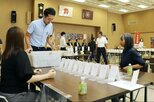 自民党新総裁に石破茂氏選出を伝える本紙号外を受け取る人々=9月27日、新潟市中央区のJR新潟駅