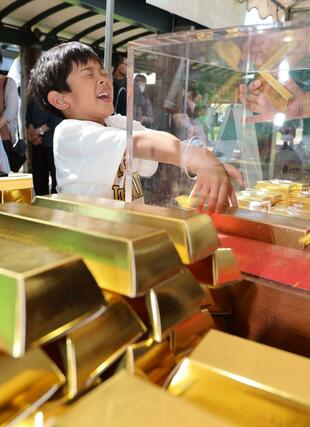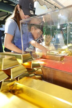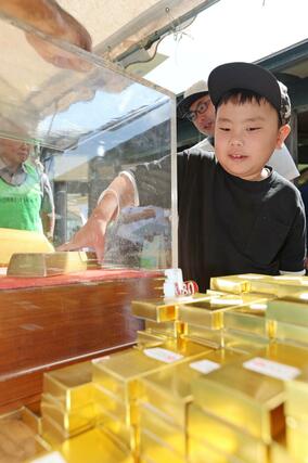 「佐渡島(さど)の金山」の世界文化遺産登録を祝うイベントが9月29日、新潟市西区の新潟ふるさと村で開かれた。島内外の郷土芸能の披露や佐渡に関連した体験コーナーがあり、訪れた家族連れらは楽しみながら佐渡の魅力を感じた。