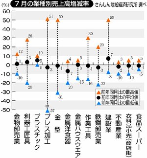 さんしん地域経済研究所(新潟県三条市旭町2)は、7月の三条・燕地区産業経済動向をまとめた。値上げの効果で売上高増減DIは前月に続きプラス圏内だった。ただ業種別では前年比マイナスが増えた。新商品も量産化には至っておらず、人件費と燃料費を加味しつつ、収益性を確保することが課題となっている。