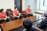 競技に向き合う姿勢などを話す(左から)吉野公浩さん、筈井翔太さん、棚村克行さん、富澤慎さん=9月28日、柏崎市駅前2
