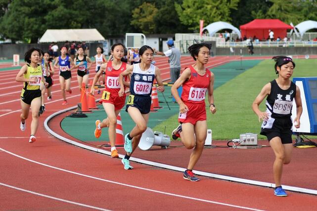 中学女子1500メートルを大会新の4分58秒17で制した亀田中2年の長谷川奈央(なお)さん(13)は「納得のいくタイムではなかったけれど、終盤一気にギアを上げられた」と笑顔を見せた。