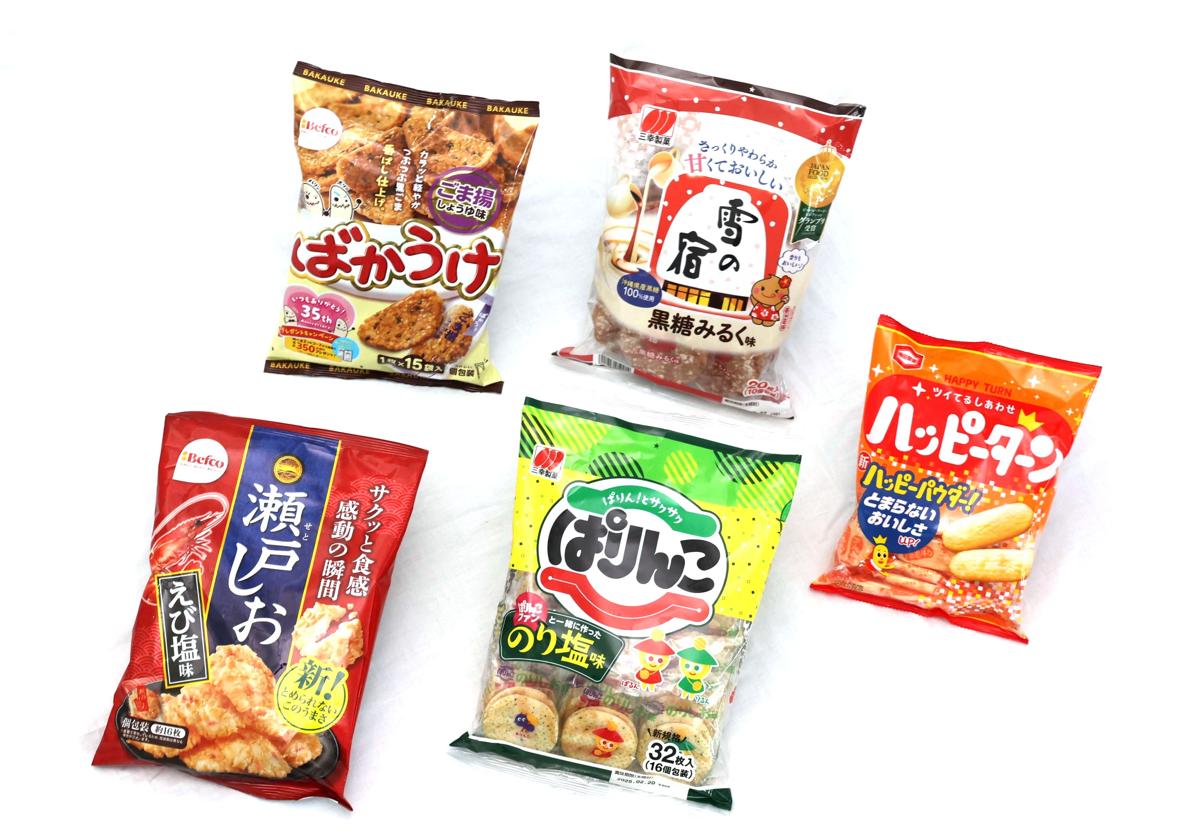 栗山米菓(北区)は看板商品から2品を選びました。「ばかうけごま揚しょうゆ味」はゴマの風味が良く、「瀬戸しおえび塩味」はサクッと軽い食感が特徴。「おせんべいを食べながら元気に完走してください」とエールを送ります。