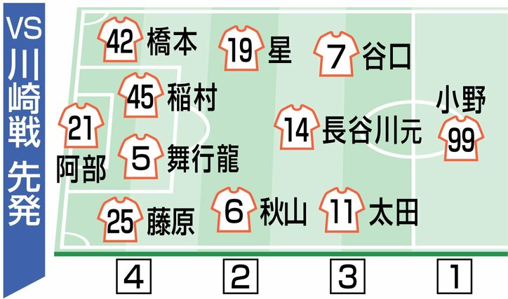 序盤はボールを保持されたが、コンパクトな守備ブロックから好機をうかがった。前半25分にMF谷口海斗が右クロスに反応し先制。45分にはMF太田修介が追加点を奪った。