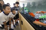小千谷市から贈呈された錦鯉。金色の「山吹黄金」と銀色の「プラチナ黄金」