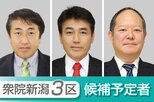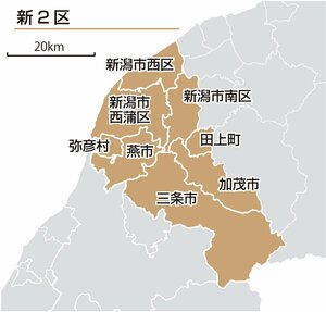 新潟市西部と三条市や燕市など県央5市町村からなる新潟2区は、自民党前職で無所属の細田健一氏(60)と、立憲民主党前職の菊田真紀子氏(54)による初対決に、日本維新の会新人の井上基之氏(44)が参戦する構図が見込まれる。