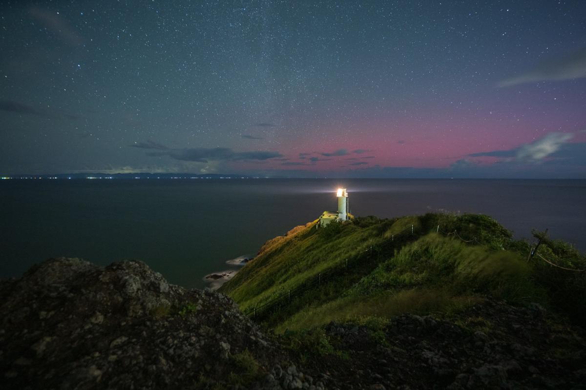 新潟市西蒲区の角田岬灯台では、江南区の会社員上田孔希さん(35)が撮影に成功。灯台の奥に赤く染まった星空が確認できた。「肉眼でも空が赤く見えた気がする。角田岬灯台はよく撮影に来るが、普段と全く違う写真を撮れて感動した」と話した。