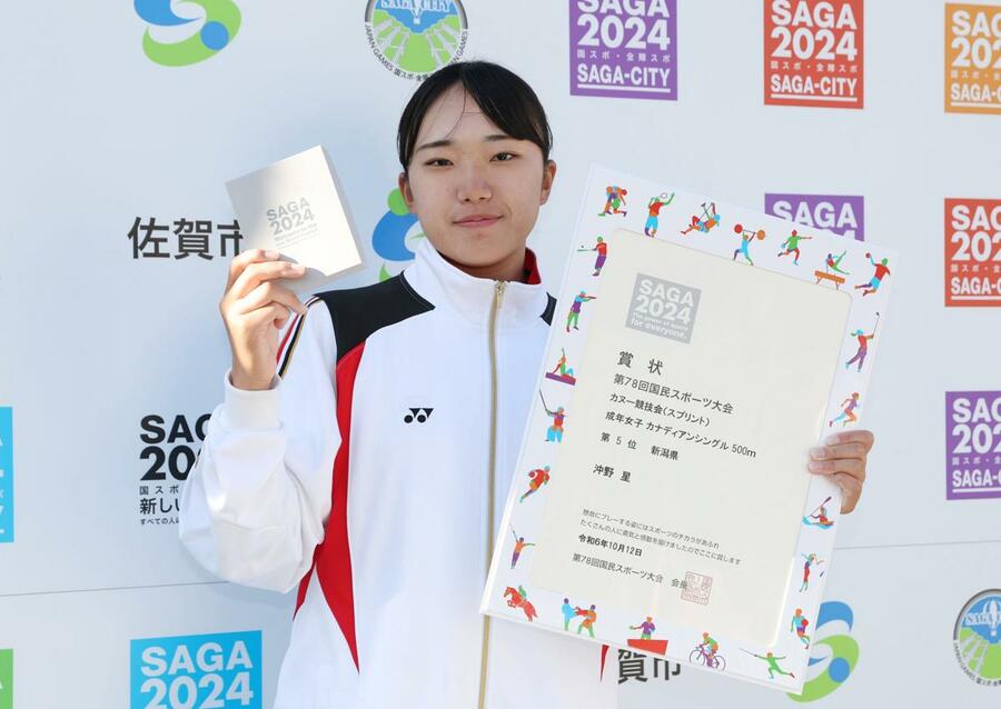 カヌーのスプリント(500メートル)は、成年女子カナディアンシングルの沖野星(東女体大)が5位入賞。成年男子カヤックシングルの下川拓樹(県スポーツ協会)は9位で惜しくも入賞を逃した。
