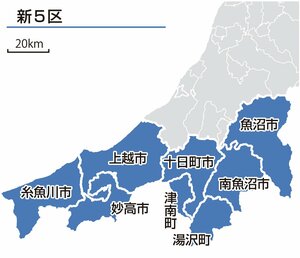 衆院選は10月15日の公示まで1週間を切り、各候補予定者による前哨戦が熱を帯びている。今回から新潟県の定数は6から5に減少。新たな区割りの下で行われる決戦にどう臨むのか。各小選挙区の情勢を追った。