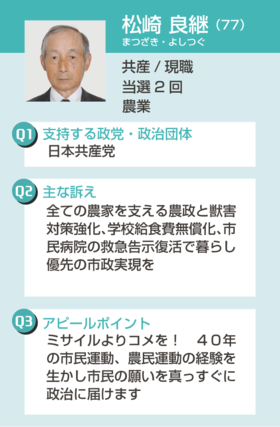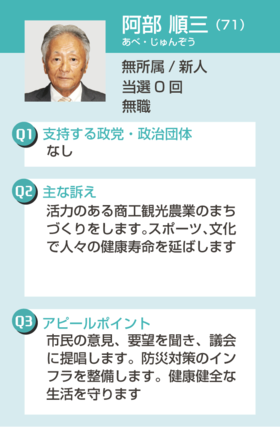 新潟県阿賀野市の阿賀野市議会議員選挙(阿賀野市議選)が10月20日に告示され、定数16に対し18人が立候補しました。投開票日は27日です。候補者の訴えやアピールポイントなどを「オリジナルカード」にまとめました。