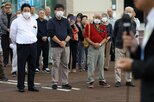県内の候補者の街頭演説に集まった建設業関係者ら=10月16日
