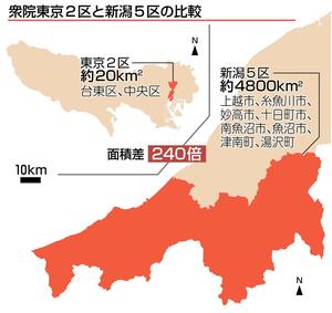 10月27日投開票の衆院選は小選挙区定数「10増10減」を受け、新たな区割りで行われている。新潟県など10県で選挙区が減った一方、東京都は5増の30選挙区で144人もの候補が舌戦を繰り広げる。今後も人口の東京一極集中が進めば、「1票の格差」を是正するため、東京の定数はさらに増える。首都の有権者や候補は、こうした状況をどう考えるのか。日本一小さい選挙区の東京2区を歩いた。(東京支社・斎藤了一)
