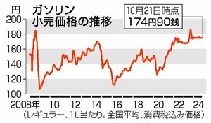 経済 ガソリン価格横ばい、全国平均174円90銭 新潟県は20銭高い172円40銭 2024/10/27 9:00 経済産業省が発表した10月21日時点のレギュラーガソリン1リットル当たりの全国平均小売価格は、前週調査から横ばいの174円90銭だった。新潟県は20銭高い172円40銭。政府が石油元売り会社に支給している... 残り283文字(全文:386文字) ここから先を読むには 続きを読む(会員登録する) 続きを読む(ログイン) 新潟日報朝刊を購読していますか? はい いいえ トップページで最新情報を見る 関連ニュース お土産に「佐渡牛乳ガレット」いかが?佐渡乳業の牛乳使用、パッ... 11:30 異業種連携で新会社、五泉市でネット事業 NCT・越後天然ガス... 10:30 トランプ関税影響これからか…価格転嫁は「横にらみ」、AIRM... 10:00 積雪地域に対応!地面に垂直設置の太陽光発電設備、燕市で発電開... 1/21 生成AIで地域課題解決へ、新潟日報社と信濃毎日新聞社(長野市... 1/21 人手不足の物流業界、軽油の暫定税率廃止など好材料も…県トラッ... 1/21 定点カメラ80台の映像から選んで視聴、“待ち時間”解消!ケー... 1/21 サツマイモとリンゴの甘~い香り♡ウオロクが児童考案ピザを限定... 1/21 大光銀行、ATM手数料を「全時間無料」へ 4月1日から平休... 1/20 塩沢つむぎ記念館(南魚沼市)が事業譲渡、湯沢町の観光業社co... 1/20 新潟のものづくり支える匠「県央マイスター」に3人認定!3年ぶ... 1/20 新潟×九州福岡の美味、懐石料理で共演♡新潟グランドホテルで2... 1/20