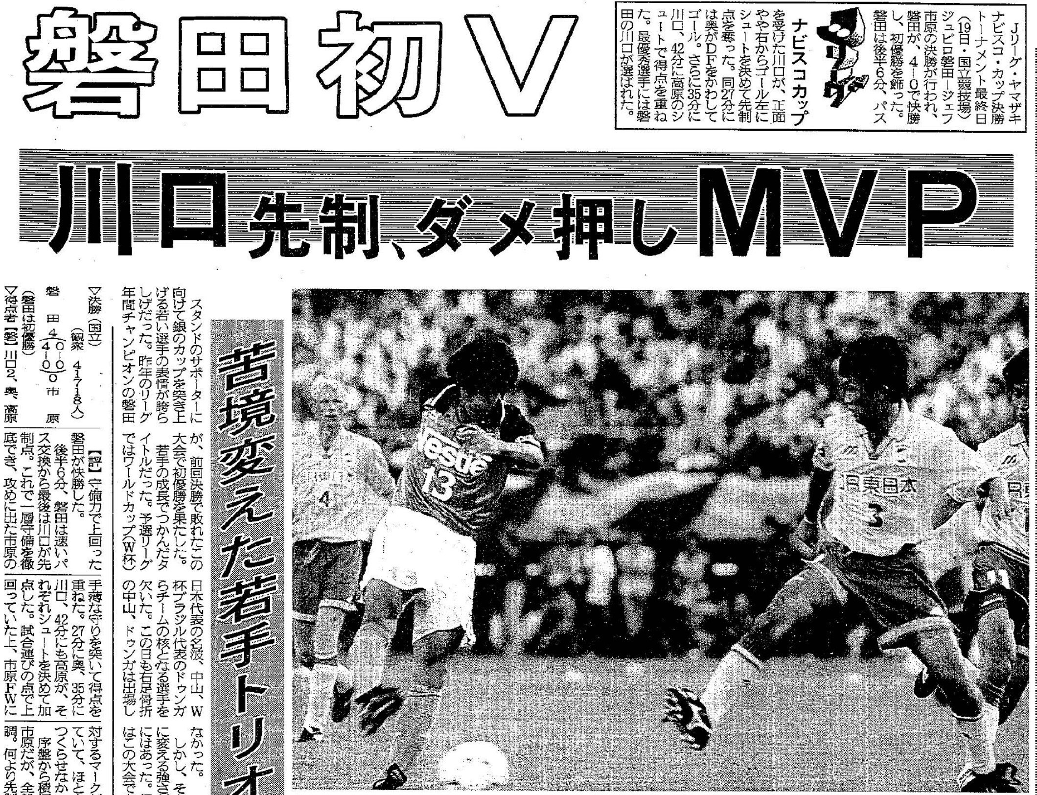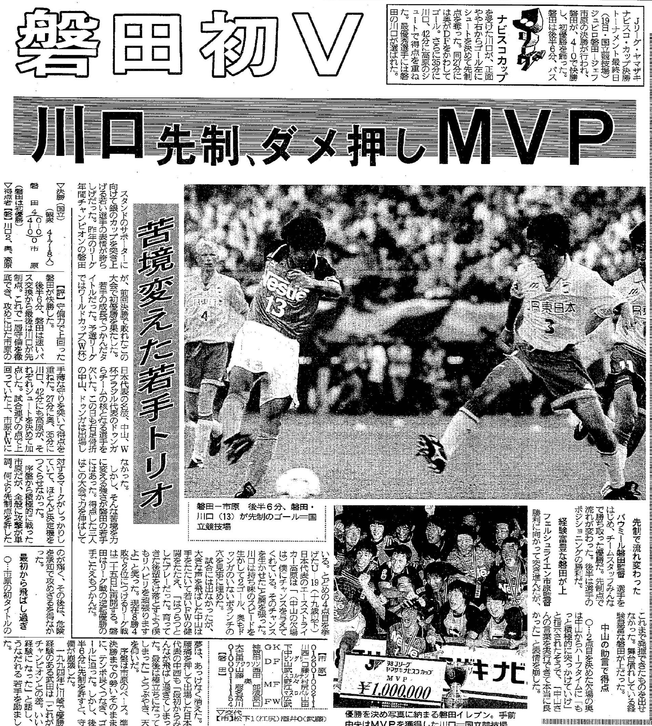 ナビスコ杯MVPは第1回大会の三浦知良(ヴェルディ川崎)に続き、ビスマルク(同)、サントス(清水エスパルス)、ジョルジーニョ(鹿島アントラーズ)と世界でもトップレベルの選手が獲得。その次に、川口信男という新潟県人の名前が刻まれたのだった。