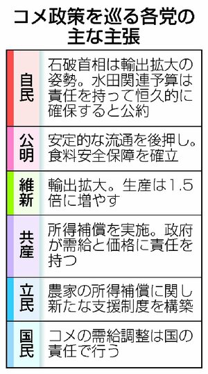 経済 衆院選2024 [衆議院選挙2024]減り続けるコメの国内需要、打開策は輸出頼み 持続的生産へ決め手欠く各党 2024/10/25 12:30 衆院選ではコメも争点に浮上した。今年は品不足に焦点が当たったが、最大の問題は年間10万トンペースで進む国内需要の急減だ。石破茂首相は輸出拡大による生産の下支えを訴え、自民党は安定供給を公約に明記。... 残り532文字(全文:631文字) ここから先を読むには 続きを読む(会員登録する) 続きを読む(ログイン) 新潟日報朝刊を購読していますか? はい いいえ トップページで最新情報を見る 関連ニュース 10月衆議院選挙・新潟県内5選挙区、出馬15人の支出平均67... 1/6 10月の衆議院選挙、投票所が全国1026カ所減少 立会人のな... 2024/12/22 自民党、衆議院選挙の落選者対象に懇談会 新潟5区で敗れた高鳥... 2024/12/9 衆院選大敗の自民党、執行部へ批判続出も石破茂首相の即時退陣要... 2024/11/8 [衆議院選挙2024・新潟]全敗受け自民県連が結果総括、支部... 2024/11/6 [衆議院選挙2024・新潟]県内全勝の立民、議員団「こちらを... 2024/11/6 [インタビュー・衆議院選挙2024]「シブロク精神、今こそ」... 2024/11/5 連載[実録・衆議院選挙2024 新潟の戦い]<5>5区 梅谷... 2024/11/4 連載[実録・衆議院選挙2024 新潟の戦い]<4>4区 米山... 2024/11/3 連載[実録・衆議院選挙2024 新潟の戦い]<3>3区 黒岩... 2024/11/2 新潟県阿賀野市に登録、在外選挙人1人に投票用紙を送付せず…衆... 2024/11/1 [衆議院選挙2024]新潟県で与党惨敗「逆風」を読む-5区編... 2024/11/1