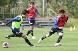 Jリーグ・YBCルヴァン・カップ決勝に向けて練習するJ1アルビレックス新潟のMF藤原奏哉=10月27日午前11時すぎ、聖籠町東港5の新潟聖籠スポーツセンターアルビレッジ