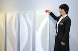 JR上所駅の設備デザインを披露する新潟南高の生徒たち=10月24日、新潟市中央区のJR東日本新潟支社