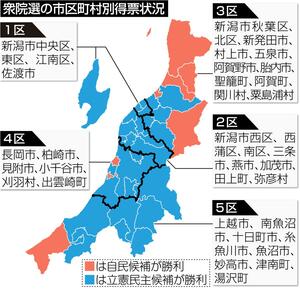 2025年夏に全県1区で行われる参議院選挙(参院選)新潟選挙区(改選数1)を見据え、今回の衆議院選挙(衆院選)における新潟県内5小選挙区の自民党系候補と立憲民主党候補の得票をそれぞれ足し合わせたところ、立民候補が約53万6千票(得票率51・7%)、自民候補が約38万7千票(同37・3%)だった。単純比較はできないが、仮に自民への逆風が続いたまま参院選になれば立民が優位となる可能性もありそうだ。