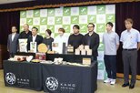 加茂市観光協会事務局の阿部駿さん(中央)、鈴木智也さん(左)、諸橋和也さん(右)=市役所