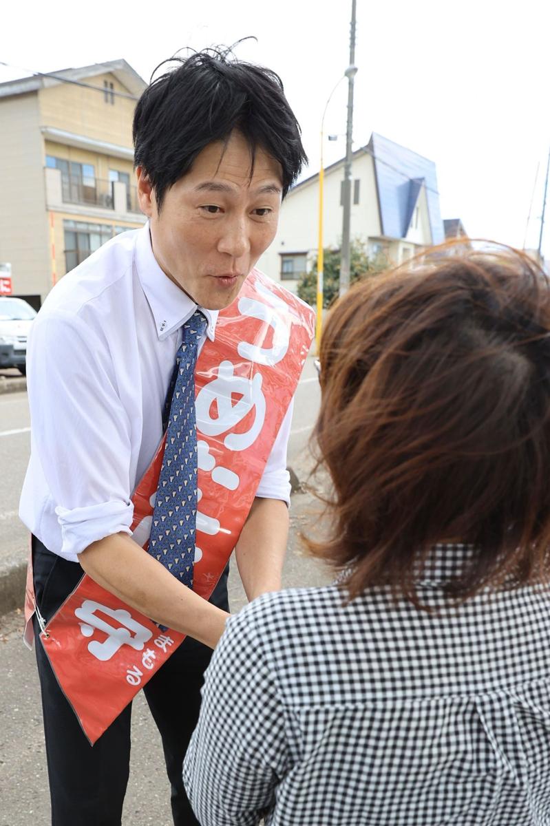 同じ頃、立憲民主党の梅谷守(50)は魚沼地域を回るためJR小出駅にいた。偶然居合わせた中年の女性たちは梅谷と握手し「やっと会えたね」と笑顔だった。地域行事の主催者に日本酒を供与した問題が2月に発覚して以降、表から姿を消し活動は事実上停止。魚沼地域の開拓も止まった。だが反応は悪くなかった。