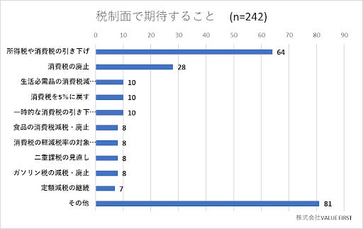 最も多かった回答は「所得税や消費税の引き下げ」
