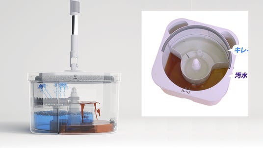 掃除をした後モップを洗うと水が汚れてしまい、水をいちいち新しくするのが面倒。そんなお悩みを解決する商品です。