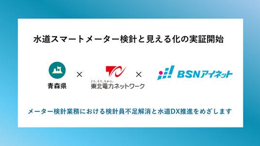 株式会社BSNアイネット(代表取締役社長:南雲俊介)は、自社がサービス提供する「水道ポータル」を活用し、青森県(知事:宮下宗一郎)と東北電力ネットワーク株式会社青森支社(執行役員青森支社長:阿部公哉)と共同で電力スマートメーターを活用した水道の自動検針サービスと水道使用量の見える化についての実証試験を青森県内の3市1町(黒石市・五所川原市・むつ市・野辺地町)で2024年11月から開始しました。