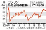 経済 ガソリン価格2週連続値下がり、全国平均174円50銭 新潟県は30銭高い172円20銭 2024/11/9 9:30 (最終更新: 2024/11/9 9:40) 経済産業省が発表した11月5日時点のレギュラーガソリン1リットル当たりの全国平均小売価格は、前週調査と比べて30銭安い174円50銭だった。値下がりは2週連続。新潟県は30銭高い172円20銭。政府が... 残り314文字(全文:415文字) ここから先を読むには 続きを読む(会員登録する) 続きを読む(ログイン) 新潟日報朝刊を購読していますか? はい いいえ トップページで最新情報を見る 関連ニュース ガソリン価格横ばい、全国平均174円90銭 新潟県は20銭高... 2024/10/27 異業種連携で新会社、五泉市でネット事業 NCT・越後天然ガス... 10:30 トランプ関税影響これからか…価格転嫁は「横にらみ」、AIRM... 10:00 積雪地域に対応!地面に垂直設置の太陽光発電設備、燕市で発電開... 1/21 生成AIで地域課題解決へ、新潟日報社と信濃毎日新聞社(長野市... 1/21 人手不足の物流業界、軽油の暫定税率廃止など好材料も…県トラッ... 1/21 定点カメラ80台の映像から選んで視聴、“待ち時間”解消!ケー... 1/21 サツマイモとリンゴの甘~い香り♡ウオロクが児童考案ピザを限定... 1/21 大光銀行、ATM手数料を「全時間無料」へ 4月1日から平休... 1/20 塩沢つむぎ記念館(南魚沼市)が事業譲渡、湯沢町の観光業社co... 1/20 新潟のものづくり支える匠「県央マイスター」に3人認定!3年ぶ... 1/20 新潟×九州福岡の美味、懐石料理で共演♡新潟グランドホテルで2... 1/20