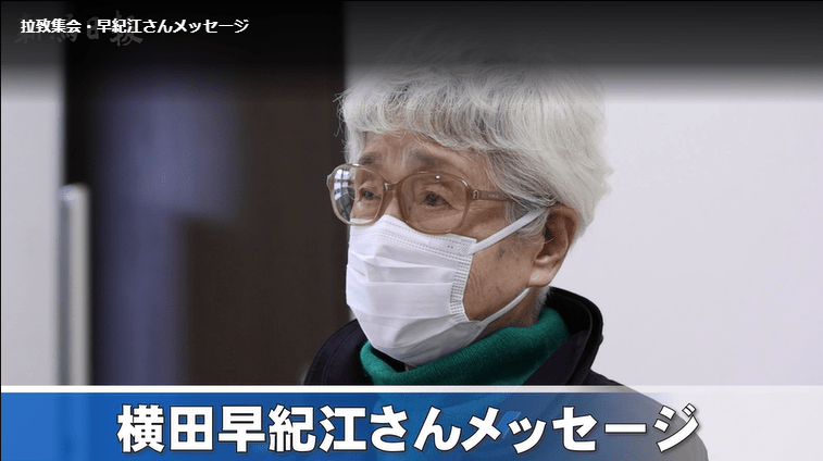 ◀2024年の「忘れるな拉致 県民集会」で公開された、横田めぐみさんの母早紀江さんの動画メッセージはこちらから