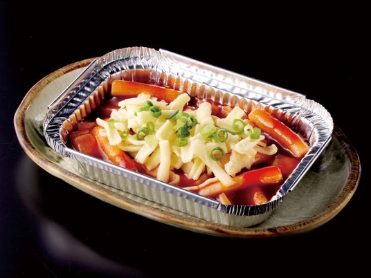 コチュジャンをベースにした甘辛い味つけのトッポギにチーズをトッピング。ホイルで煮込んだ提供が韓国気分を更に増長します。