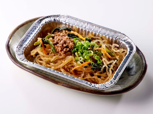 茹でた春雨とコクのある味付けのチャプチェ。醤油をベースにした味付けで、ごま油の風味も加わって、コク旨な韓国風の甘辛炒めです。ホイル焼きで提供いたします。