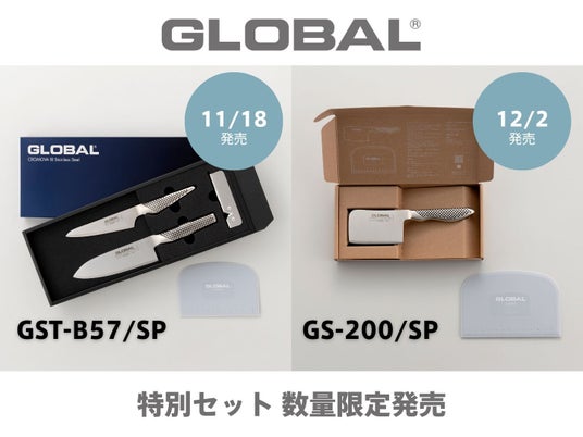 オールステンレス一体型包丁の先駆けとして、星付きのシェフから一般家庭まで、40年以上にわたり世界中のキッチンで愛される『GLOBAL』から、人気の商品を組み合わせた特別セット2種が数量限定にて発売されます。